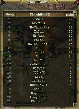 - Thành viên đội bị diệt, đội -2đ, thấp nhất giảm còn 0