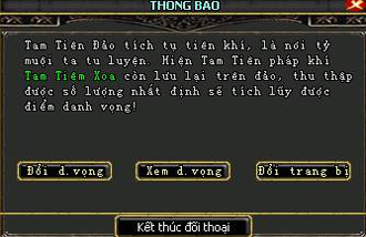 Người chơi có thể đến Diêu Trì gặp Quỳnh Tiêu (201,191) để đổi danh vọng.