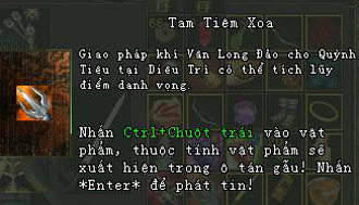 Thu thập được Tam Tiêm Xoa mang về giao cho Quỳnh Tiêu sẽ nhận được điểm danh vọng.