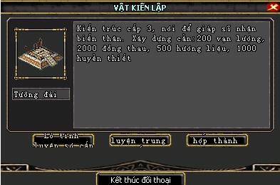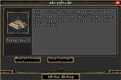 - Phải đạt được 200 điểm cống hiến thì hộp thoại ở Tướng Đài mới xuất hiện nút Mua Lò tinh luyện trung cấp.