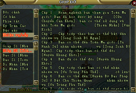- Bật F1 mục Tiên-Ma để xem cách nhiệm vụ, tính năng mà nhân vật có thể thực hiện